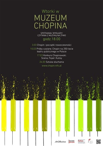 Nowy cykl spotkań w Muzeum Fryderyka Chopina rusza już w marcu. Organizatorzy zapraszają w każdy wtorek o godz. 18.00 na spotkania, wykłady, czytania z dużą dawką muzyki na żywo w czterech odsłonach. Wstęp wolny.