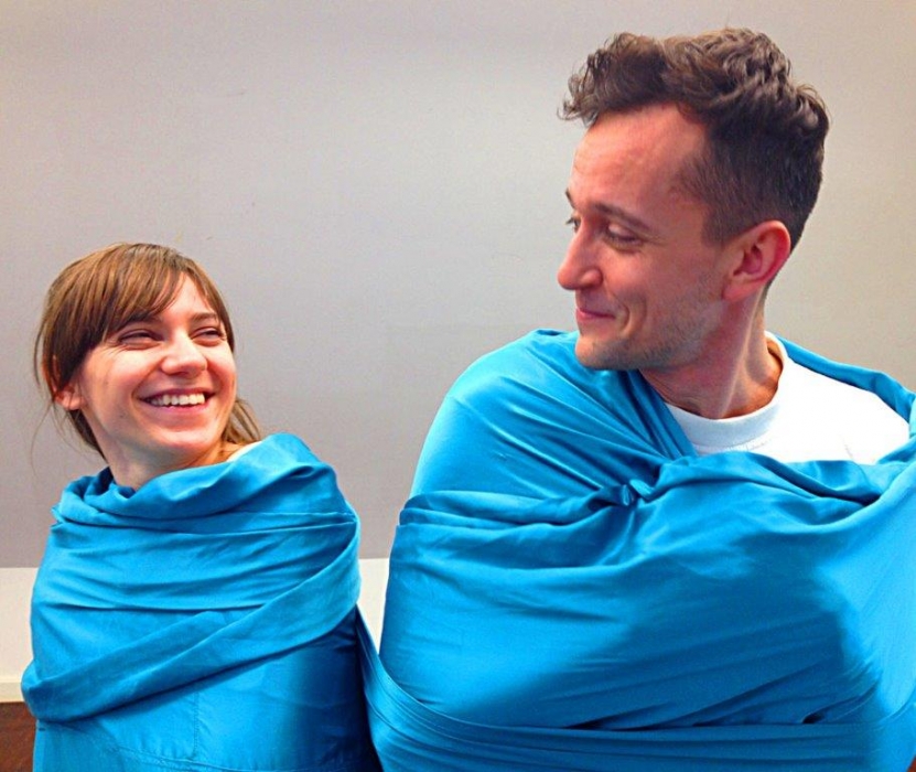 Bohaterami spektaklu są Apli, czyli on oraz Papli, czyli ona – to właśnie w rękach tej pary znajdzie się metaforyczny świat, którego symbolem jest ogromna płachta błękitnego materiału. Materiał podczas spektaklu przeobraża się i przyjmuje coraz to nowe formy i kształty. Dzięki niemu spektakl jest bardziej dynamiczny i zachęca młodych widzów do zabawy. Wszystkie przedstawienia Teatru dla najmłodszych BLUM są bowiem oparte na autorskiej metodologii, na którą składają się 3 etapy: „przedgra”, spektakl właściwy i zabawa po spektaklu. Pierwszy etap odbywa się jeszcze we foyer przed wejściem dzieci na widownię: postaci ze spektaklu przechadzają się wśród widzów, oswajają ich ze sobą wprowadzając w klimat przedstawienia. Spektakl właściwy dzieci oglądają już jako „prawdziwi” widzowie z wyraźnym podziałem przestrzeni na widownię i scenę. Czas trwania przedstawienia dostosowany jest do możliwości percepcyjnych dziecka i trwa nie dłużej niż 30 minut. Ostatni z etapów to wspólna zabawa, kiedy scena zamienia się w swoisty plac zabaw, gdzie dzieci wykorzystując elementy scenografii i rekwizyty dają upust swojej twórczej ekspresji. Wtedy dopiero widać, jak każde z dzieci odreagowuje emocje nagromadzone w trakcie oglądania przedstawienia.