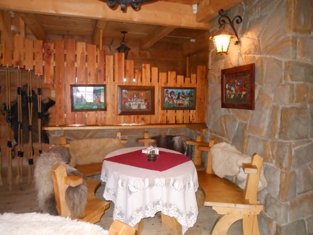 Wystrój restauracji nawiązuje do tradycji regionalnych. Na ścianach wiszą obrazy i malowidła na szkle znanych, pienińskich artystów: Anny Madei, Wieńczysława Kołodziejskiego oraz Henryka Zachwiei, zwanego „Baltazarkiem”. Jego rzeźby witają również gości przed wejściem do budynku. Do restauracji zaglądają dosyć często artyści polscy i zagraniczni, koncertujący w pobliskiej „Muzycznej Owczarni” oraz ludzie ze świata, polityki, mediów, kultury. W księdze pamiątkowej znajdują się cenne wpisy artystów, którzy już odeszli: Agnieszki Osieckiej, Piotra Skrzyneckiego a także licznych innych zadowolonych gości. Żywiono tu ekipę filmową Agnieszki Holland podczas kręcenia „Janosika” a także ekipę Jerzego Skolimowskiego, kręcącą w Jaworkach sceny do filmu pt. „Essential Killing” z Vincentem Gallo.