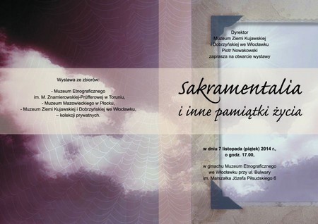 W dniu 7 listopada br., o godz. 17.00, w gmachu Muzeum Etnograficznego we Włocławku, ul. Bulwary im. Marszałka J. Piłsudskiego 6 odbędzie się wernisaż wystawy czasowej pn. „Sakramentalia i inne pamiątki życia”.