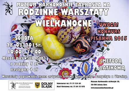 Muzeum Karkonoskie zaprasza w sobotę, 28 marca na rodzinne warsztaty artystyczne i konkurs plastyczny o tematyce świąt Wielkanocnych. Warsztaty poprowadzi znana artystka ludowa Pani Mariya Ivanyshyn z Ukrainy i pracownicy Działu Oświatowego Muzeum Karkonoskiego.